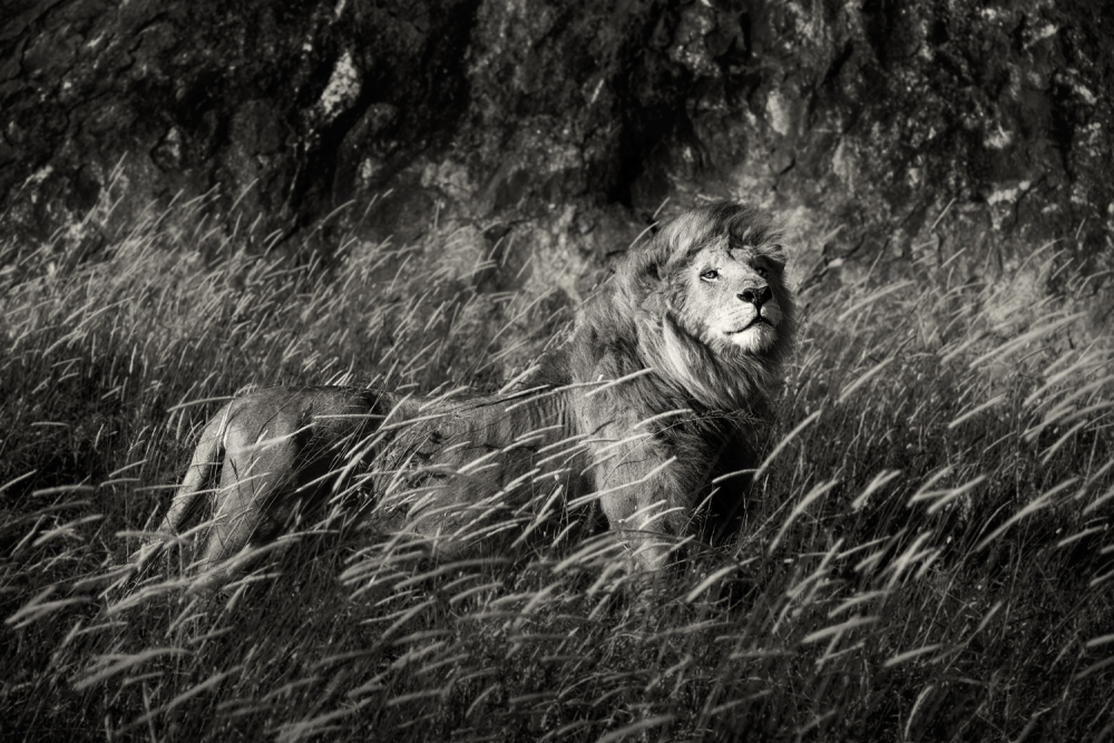 Black and white photography is for me the medium that has the most impact, especially in portraiture, and I felt early on that my lion portraits were more engaging without the distraction of color. Just shape, light, shadow and that timeless feel of monochrome photography.