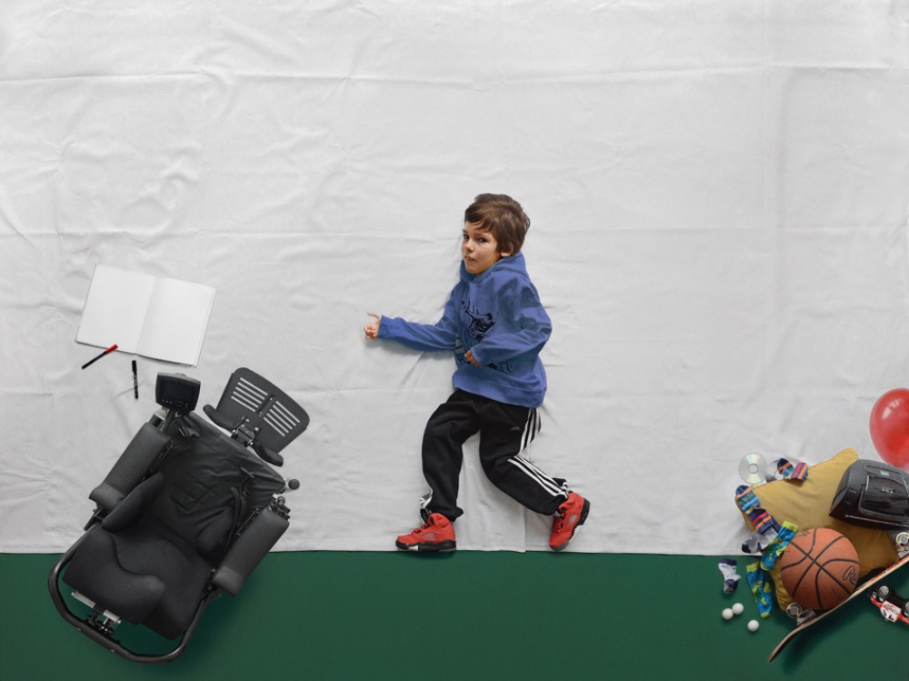 I would like to represent the photo series which is probably the most known from my work. Its title is The Little Prince and it was made in 2013. It’s a true story about 12-year-old boy Luka who visited school in the center where I work. He had muscular dystrophy, which is a very hard and progressive disease. The signs of his illness were evident very early on, so he could never walk. His body had weakened so much that he could only do some movements and had very little strength. Even with the basic life activities, such as washing, dressing and feeding, and others, usually done self-evidently and by the way, he needed someone to help him all the time. The only thing that he was still physically capable of, were small, but very weak finger movements. With them, he managed the ‘joystick’ of an electric wheel-chair, pressed the computer mouse and held a pencil.