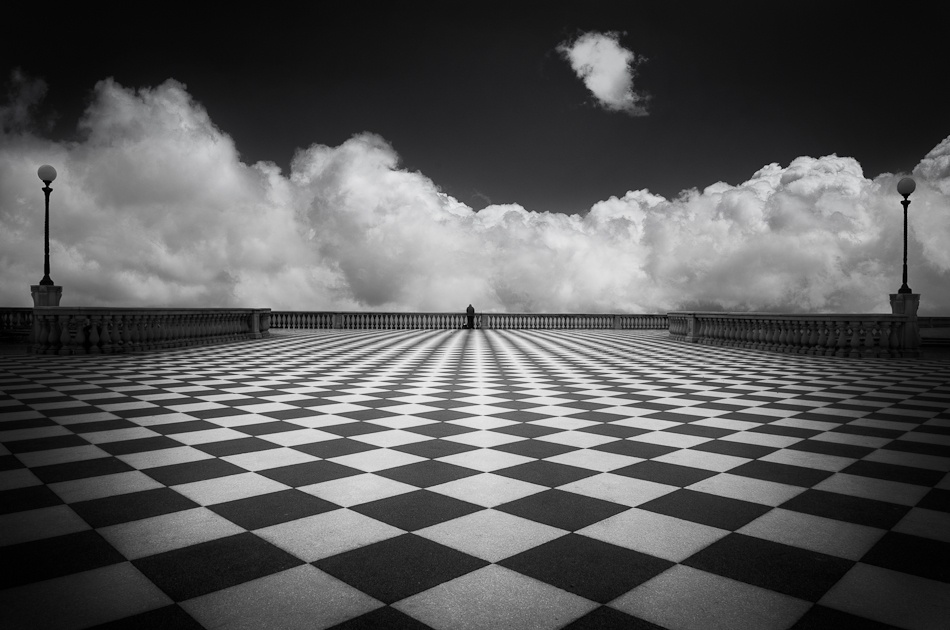 I had the privilege of going to Tuscany with some friends this spring. A month before we went I sat down and did some research. I stumbled across some pictures of La Terrazza Mascagni in Livorno, a walkway beside the sea with black and white squares and wide-open space. I knew instantly that it was a place I wanted to go since I shoot almost exclusively in black and white.