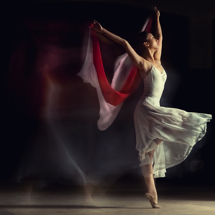 The art of photographing dancers with a slow shutter speed in order to capture their movements through motion blur is a well-established technique. Mastering this technique is not easy, but it leads to delightful results when it is correctly implemented. In order to get good results, it is necessary to slow down the shutter speed on camera while the subject is moving over a dark background and with proper light. A proper combination of movement captured on camera, digital edition and the photographer’s creativity will produce images that captivate the observer without doubts.