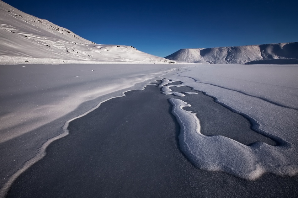 Using a vanishing point in photography is a great way to emphasize the large scale of a sweeping landscape. The converging lines act as arrows that draw the eye right towards that point on the horizon.