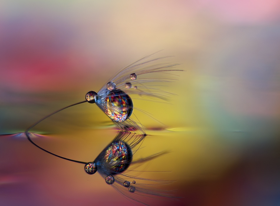 You have produced some excellent images where the main subject is a water drop on some colourful surface and in front of a colourful backdrop, such as your images “Waiting” and “In Arms”.  What is your trick for producing such images containing drops of water?
