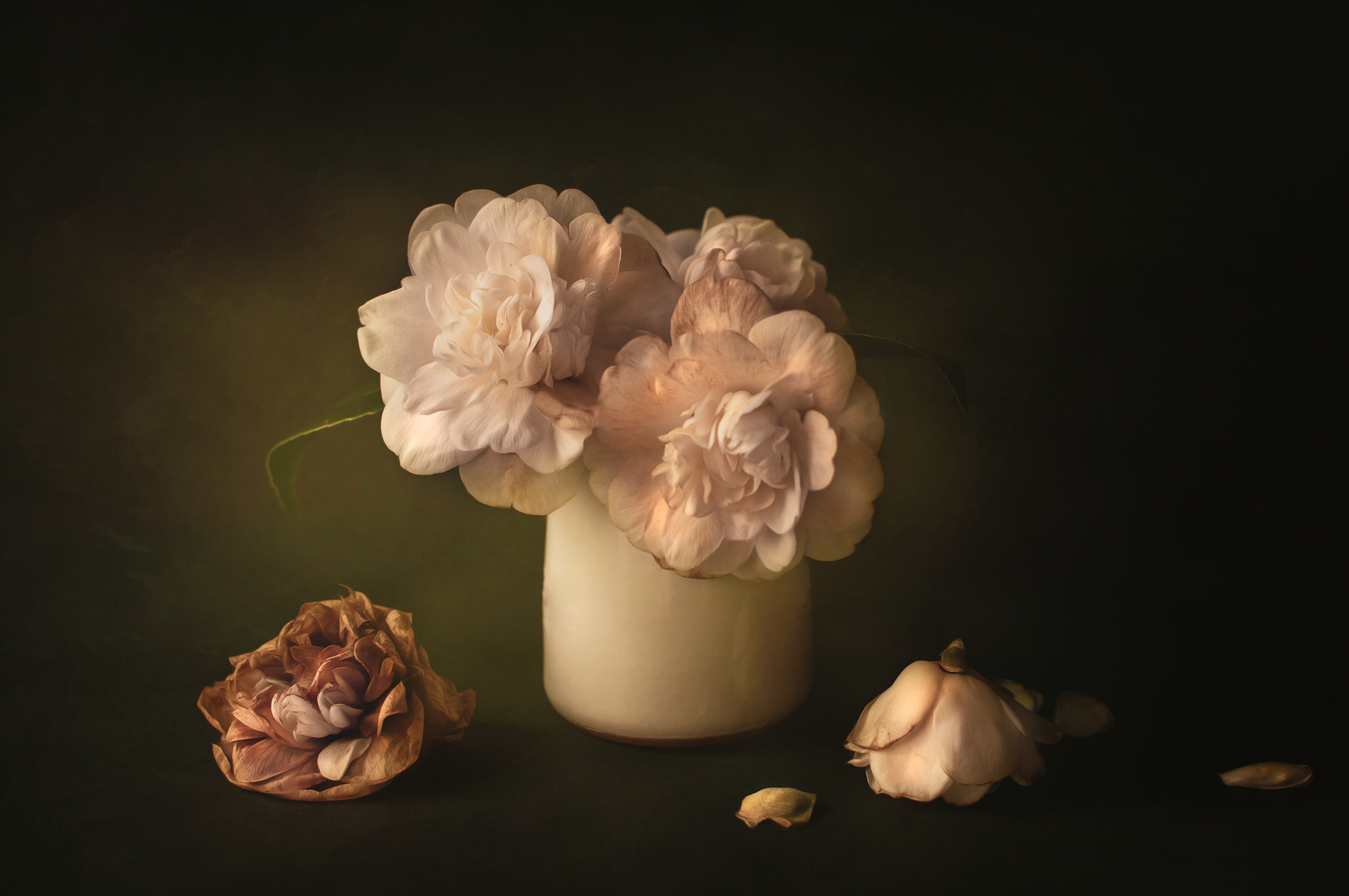 My still life gallery is not yet representative of my work. It doesn’t have the coherence of my flower compositions and portraits. I have a long way to go.