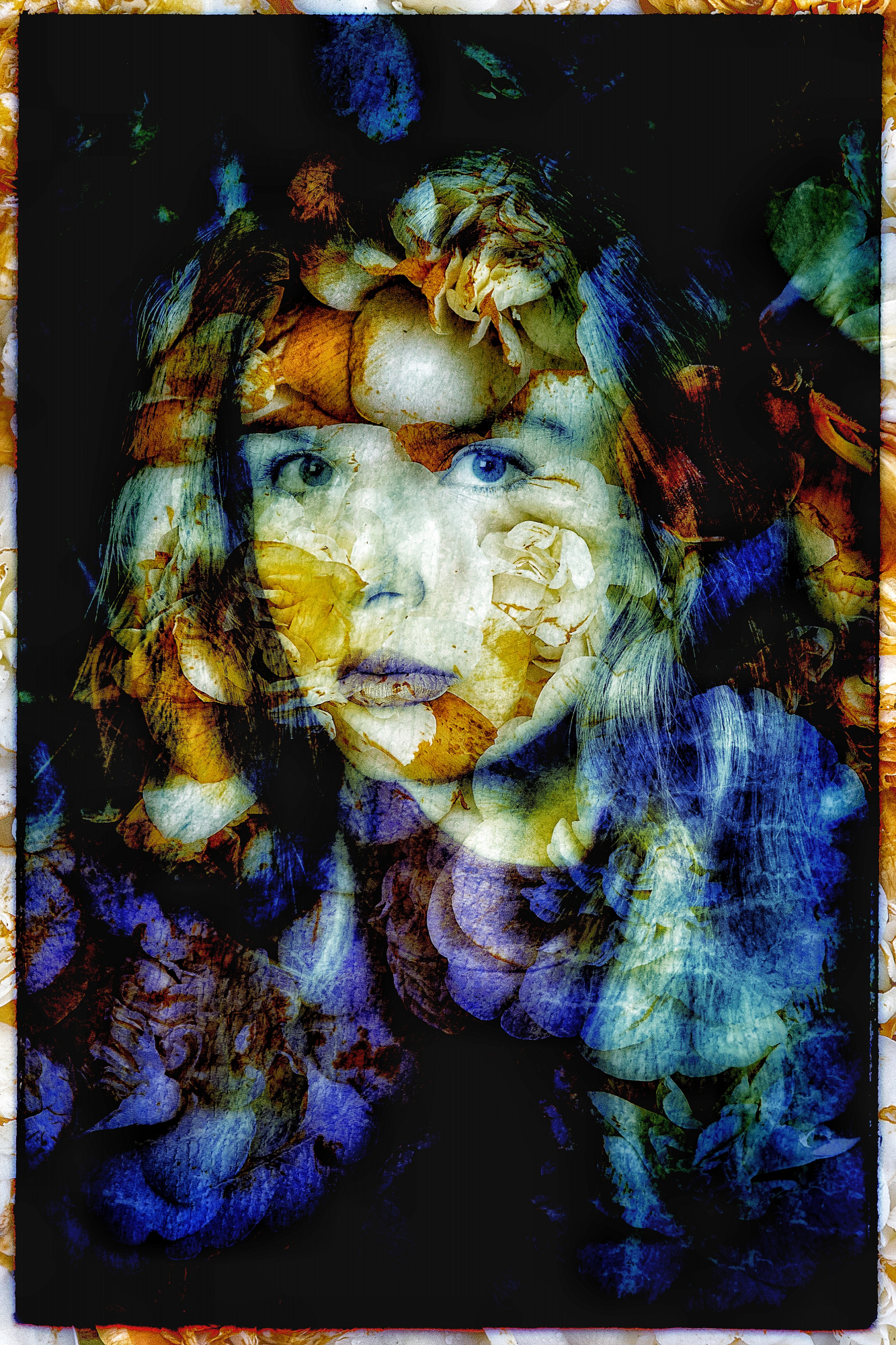 Flowers, plants contain the whole mystery of life cycles, of beauty and decay, light and darkness. They speak to us about interconnectedness and separation, boundaries and infinite spaces, birth and return to silence. My “florals” are musings about the persistence of beauty in ageing and decay, about the traces of the everlasting in the ephemeral. The feminine and the realm of flowers have always been related in the visual arts. The portraits I create are at the same time floral compositions, suffused in a sea of light that comes from every angle and from the subject herself. They are about a young woman who watches the world and her quest for an integrating principle of the spiritual into the mundane. She represents the idealism of youth. The model in these photos is my daughter.