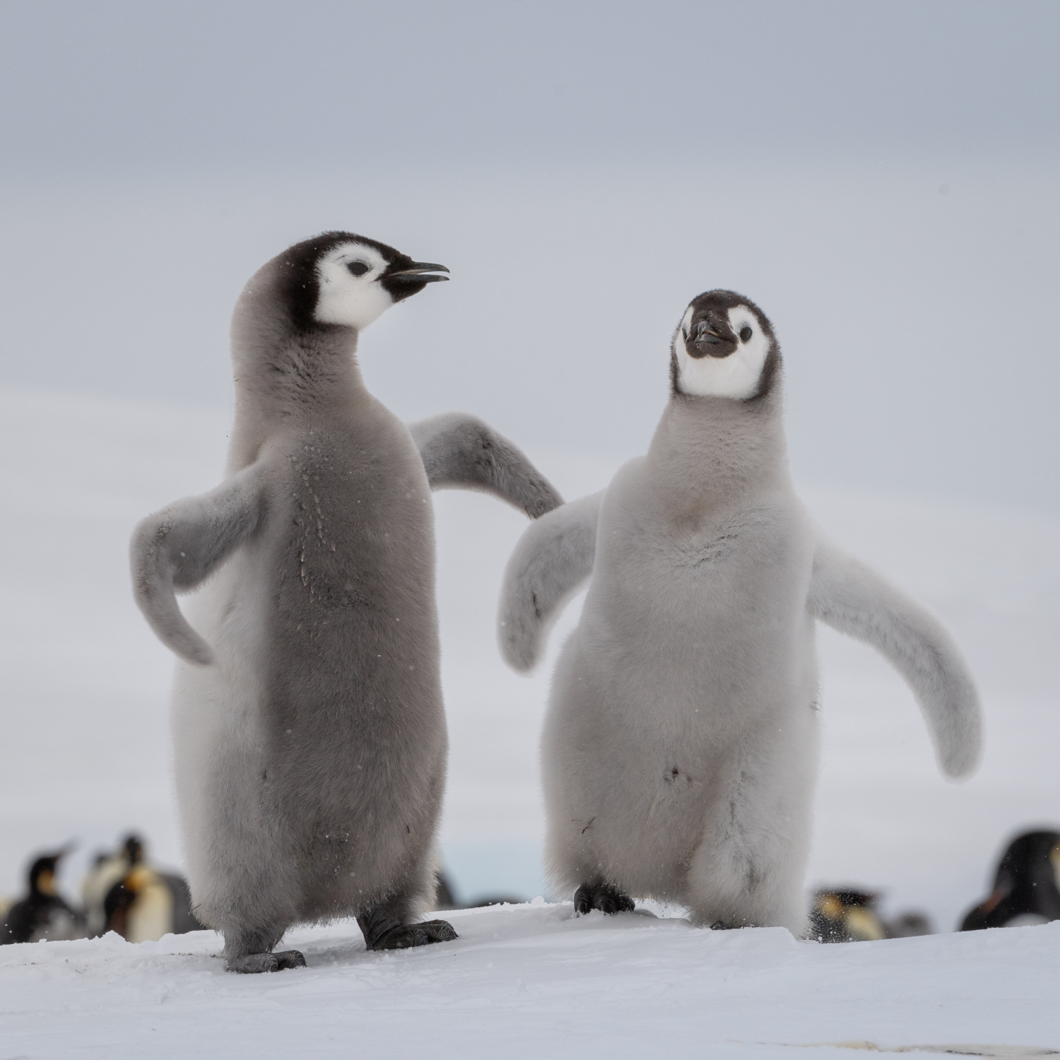 'Brother, let me tell you-Two emperor penguins talks while walking together'