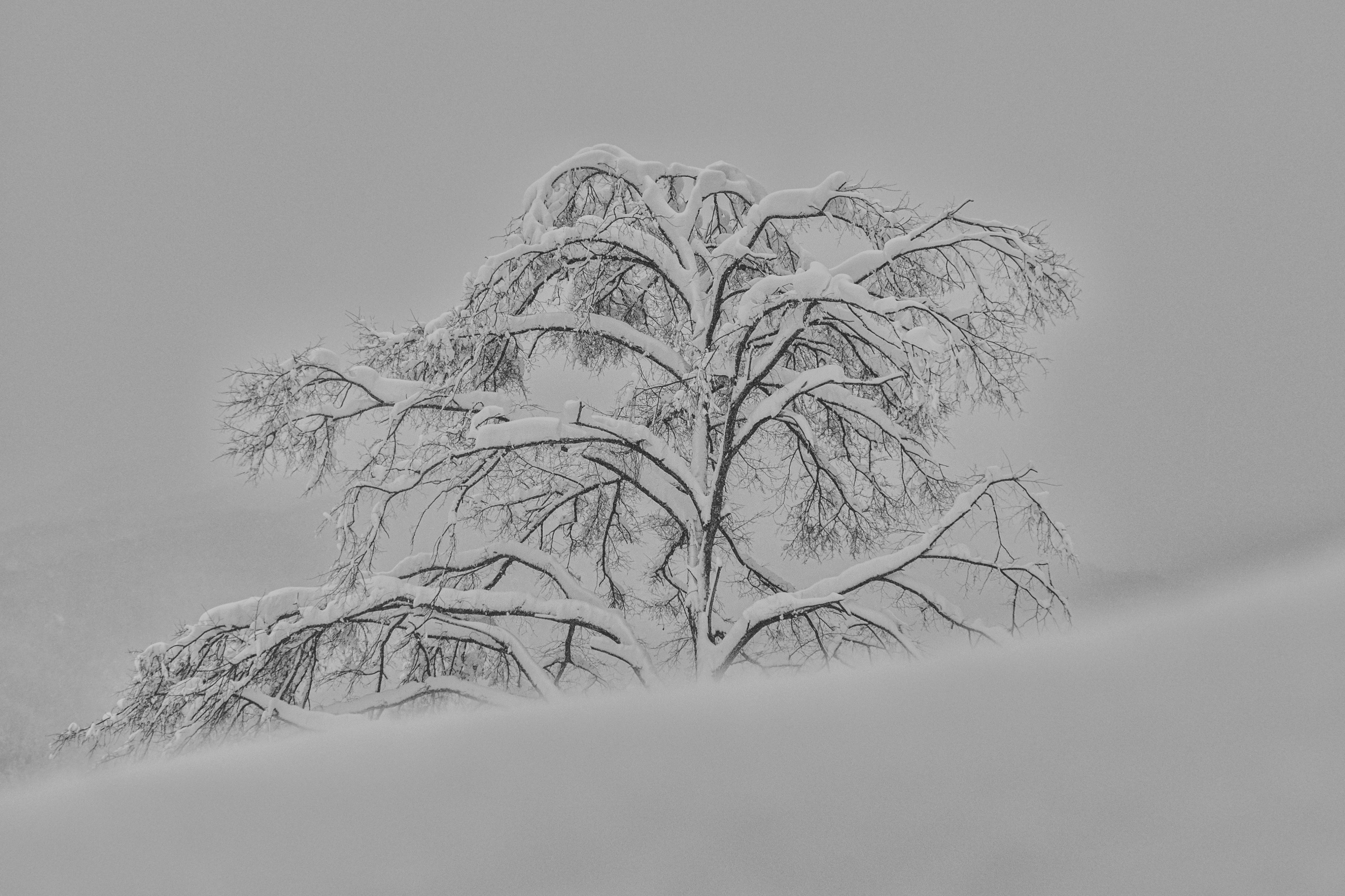 When the whole landscape is hidden under a blanket of snow, the composition looks more minimalist and interesting. Sometimes there is so much snow on the ground that the horizon is invisible, giving more freedom and the opportunity to create a composition to the photographer's taste.