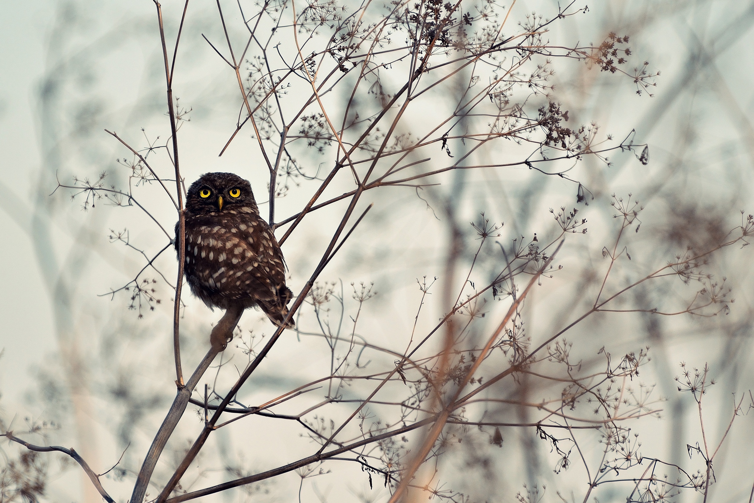 I do not have a favourite photo. However, there is one photography with a special story, far from my current photographic style. It is an older photography that has been the most successful here, on 1x. It is an image of a small owl that I managed to photograph on a summer morning through the window of my car while driving on a dusty road by the sea. I had only a few seconds and a telephoto lens. It seems that the way the little bird looks at the camera, with its large yellow eyes, has captivated many people.